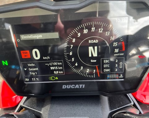 Top gepflegter Streetfighter V4S mit Einarmschwinge. Alle Inspektionen und bei Auslieferung wird der TÜV erneuert. Kennzeichenhalter Lightech und Mini Blinker von Kellermann hinten. Ducati Performance Blinker vorn.